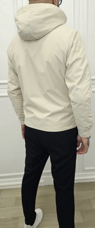 Giubbino a vento corto Cappuccio estraibile idrorepellente Nero/Crema m,l,xl,xxl,3xl