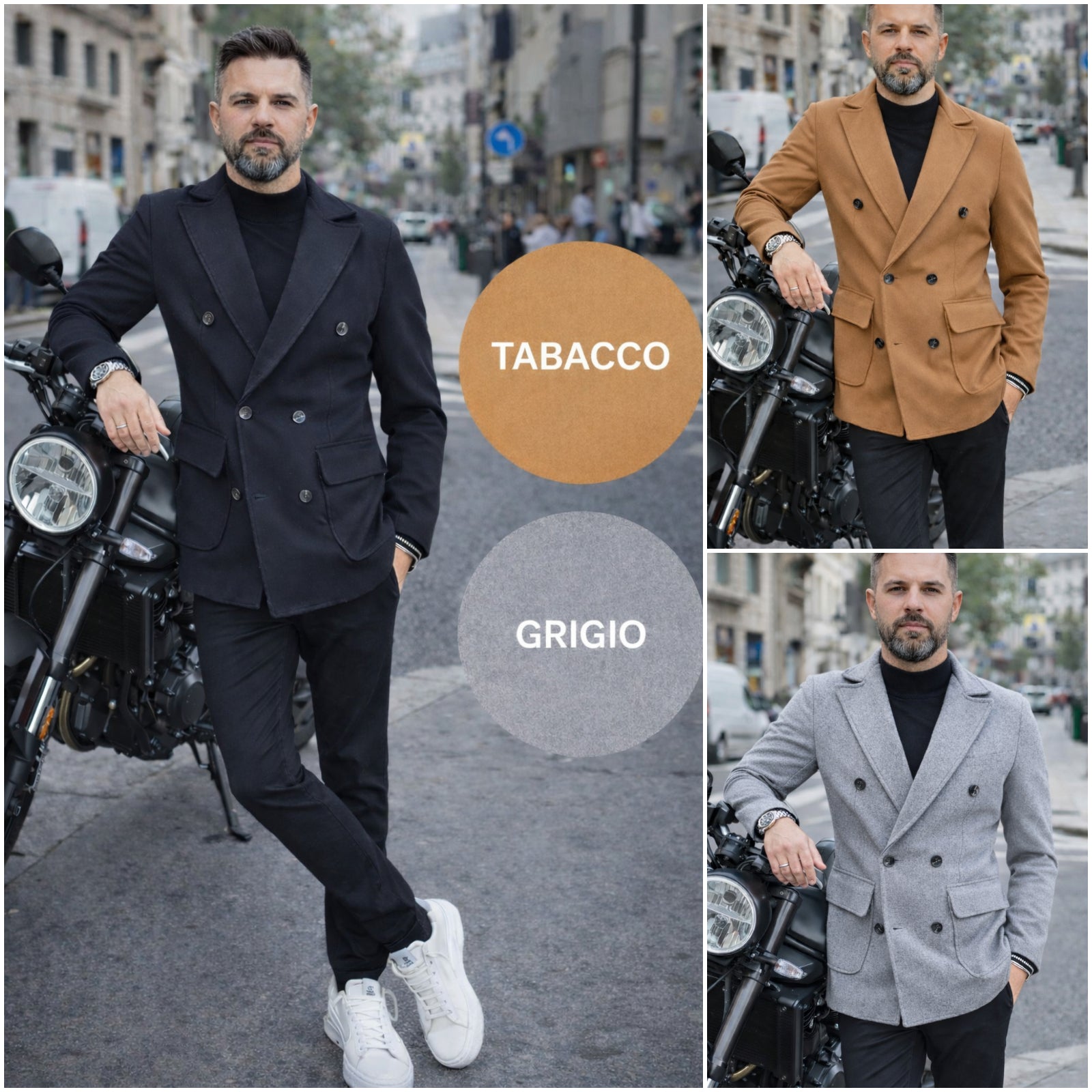 Cappottino doppiopetto made in Italy interno foderato disponibile nei colori grigio , nero, tabacco in caldo tessuto elastico, 2 tasche laterali, Ideale per un look casual, giovanile e di tendenza.