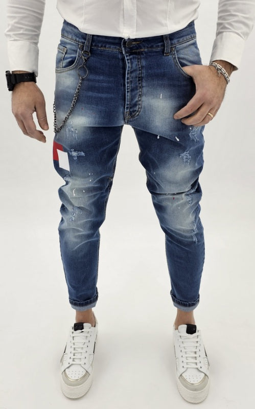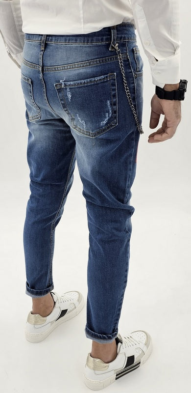 jeans uomo cavallo basso toppe strappi catena estraibile 42,44,46,48,50,52,54