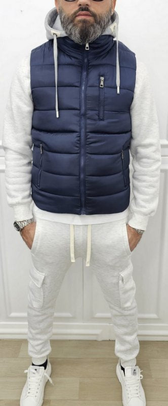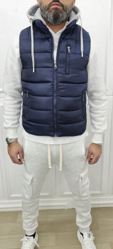 Smanicato uomo termico con cappuccio felpato estraibile con cursore, in tessuto semi impermeabile, 2 tasche laterali 1 sul petto ed 1 interna, internamente foderato Ideale per un look casual, giovanile e di tendenza.